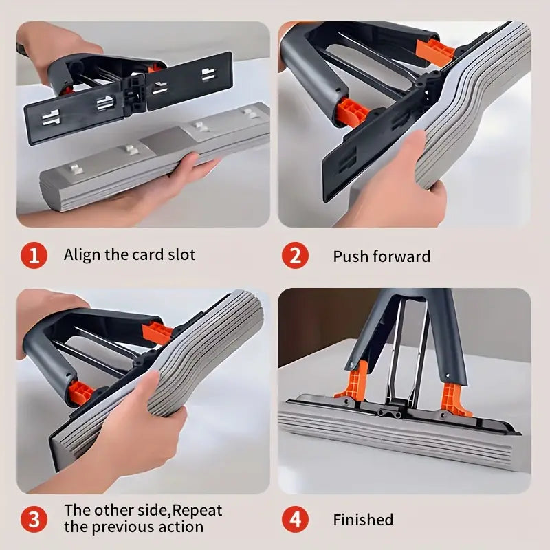 Upgrade your cleaning routine with the Multi‑Purpose Foldable Floor Squeeze Mop Wiper. This ergonomic mop features a foldable, stainless steel handle and a convenient joystick wringer that eliminates the need to touch dirty mop heads. The high-absorbency PVA sponge head soaks up spills and debris while reaching tight spaces under furniture and along edges. Perfect for tile, laminate, hardwood, and marble floors.